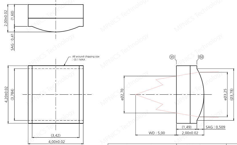 | Product No. | Type | Center WL(λnm) | AR coating WL(λnm) | EFL(mm) | L1(mm) | L2(mm) | OI(mm) | M | NA | BD(mm) |